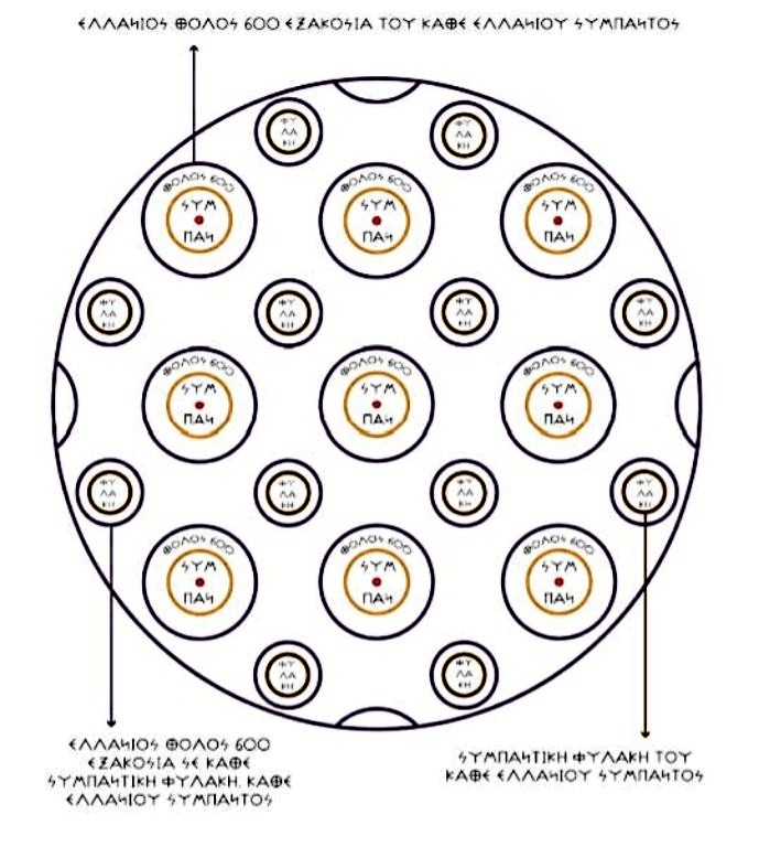 ΣΤΟ ΣΧΗΜΑ ΜΑΣ, ΒΛΕΠΟΥΜΕ ΤΗΝ ΑΝΑΠΑΡΑΣΤΑΣΗ ΤΗΣ ΔΟΜΗΣ ΤΟΥ ΕΛΛΑΝΙΟΥ ΚΟΣΜΟΥ ΜΑΣ 600 ΕΞΑΚΟΣΙΑ, ΟΠΟΥ ΑΠΟΤΥΠΩΝΟΝΤΑΙ ΤΑ ΕΛΛΑΝΙΑ ΣΥΜΠΑΝΤΑ ΜΕ ΤΟΥΣ ΚΟΣΜΙΚΟΥΣ ΕΛΛΑΝΙΟΥΣ ΘΟΛΟΥΣ ΤΟΥΣ ΝΑ ΤΑ ΠΡΟΣΤΑΤΕΥΟΥΝ, ΑΛΛΑ ΒΛΕΠΟΥΜΕ ΚΑΙ ΤΙΣ ΦΥΛΑΚΕΣ ΤΟΥ ΚΑΘΕ ΣΥΜΠΑΝΤΟΣ ΔΙΠΛΑ ΑΠΟ ΚΑΘΕ ΣΥΜΠΑΝ, ΟΠΟΥ ΚΑΙ ΟΙ ΦΥΛΑΚΕΣ ΔΙΑΘΕΤΟΥΝ ΟΛΕΣ ΤΟΥΣ ΚΟΣΜΙΚΟ ΕΛΛΑΝΙΟ ΘΟΛΟ, ΟΠΟΥ ΤΙΠΟΤΑ ΚΑΙ ΚΑΝΕΝΑΣ ΔΕΝ ΜΠΟΡΕΙ ΝΑ ΕΙΣΕΛΘΕΙ Ή ΝΑ ΕΞΕΛΘΕΙ ΑΠΟ ΑΥΤΕΣ Ή ΣΕ ΑΥΤΕΣ ΤΙΣ ΦΥΛΑΚΕΣ, ΧΩΡΙΣ ΤΗΝ ΑΔΕΙΑ ΑΥΤΩΝ ΤΩΝ 12 ΔΩΔΕΚΑ ΟΛΥΜΠΙΩΝ.
